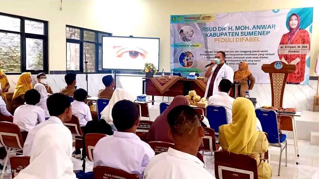 SUMENEP, beritadata.id – RSUD dr. H. Moh. Anwar Sumenep menunjukkan komitmen serius terhadap pelayanan kesehatan yang inklusif bagi kaum difabel. Selain menyediakan fasilitas ramah difabel seperti jalur pemandu dan toilet khusus, rumah sakit milik pemerintah daerah itu juga menggelar penyuluhan kesehatan gratis bagi siswa Sekolah Luar Biasa (SLB) di Kecamatan Saronggi.